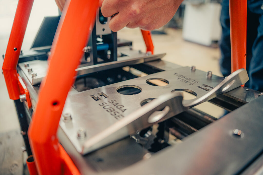 The resulting 200 mm Saga Drilling Tool is a two-part system that can be mounted together. The magnet base can be placed separately or combined with the drilling unit as a single assembly, offering flexibility during subsea operations. The tool weighs approximately 45 kilograms in seawater and can be deployed from a seabasket and remotely operated by an ROV. Though robust in appearance, it is designed with advanced internal systems that enable accurate and reliable drilling under demanding subsea conditions.